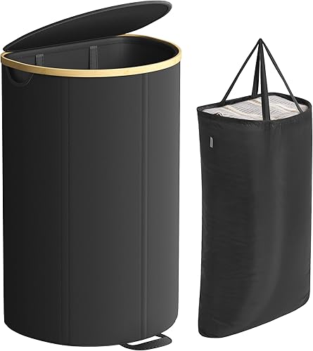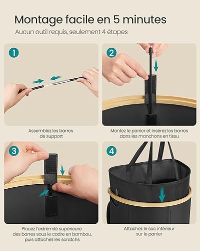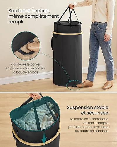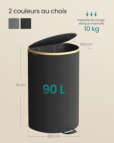 SONGMICS Panier à Linge, Corbeille à Linge Sale, 90 Litres, avec Couvercle, Sac Amovible, pour Buanderie, Chambre, Salon, Noir d’Encre et Beige Naturel LCB547B01