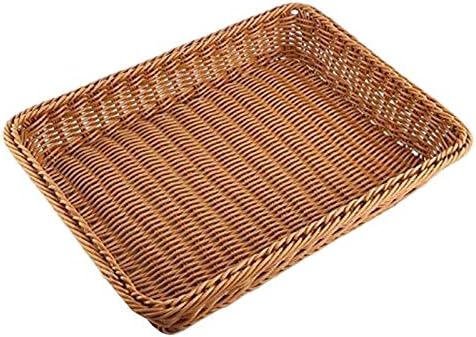 Pmkvgdy Panier de rangement en osier, panier de présentation tissé pour supermarché, nourriture, fruits, légumes, restaurant, 35 x 25 x 7 cm, Marron