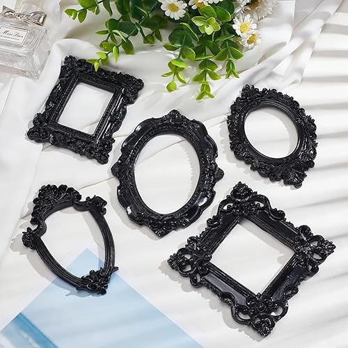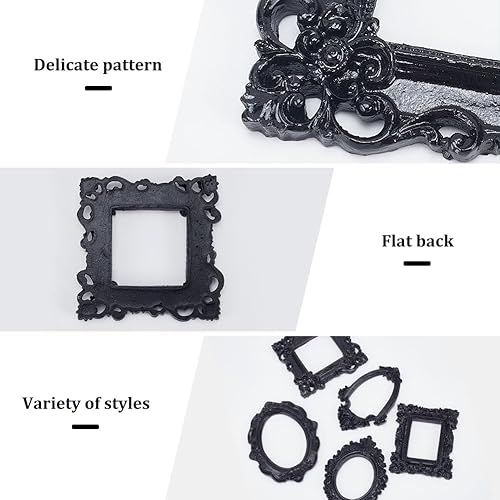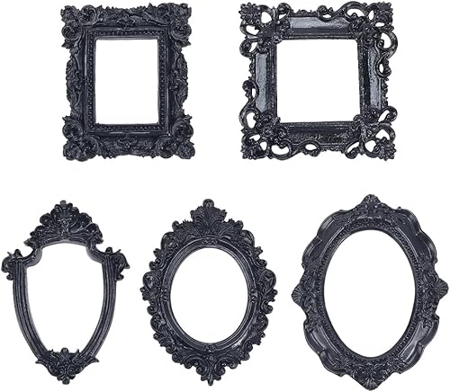 FINGERINSPIRE 5pcs Cadre en Résine Cadre Photo Gothique Noir Cadre Photo Antique Galerie Murale Cadre Photo Sans Verre Ni Support Bricolage Petit Cadre Photo Manucure Décor de Photographie à la Maison