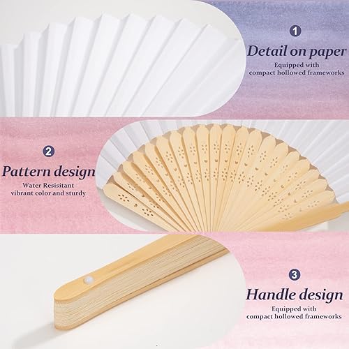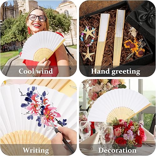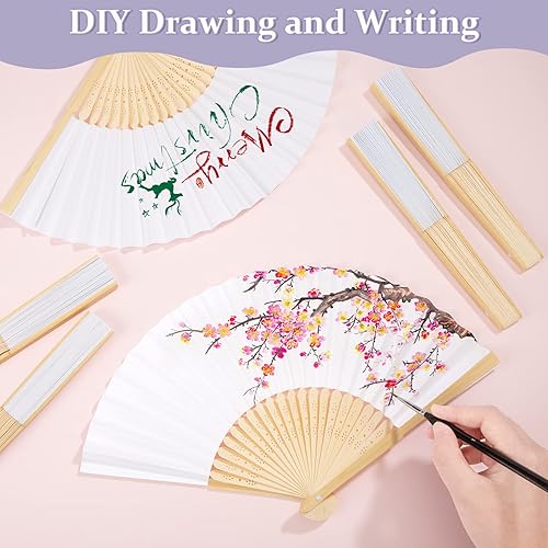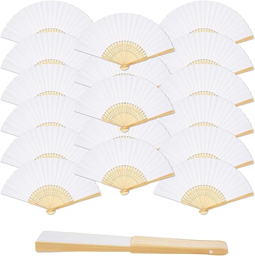 Eventail Mariage, 18 Pièces Eventail Papier Pliants Blanc Manche, Éventail à Main en Bambou, Chinois Mariage pour Cadeau Fête Déco, Peinture Calligraphie DIY, Party Anniversaire Baptême Noël