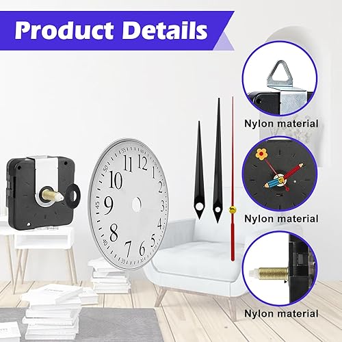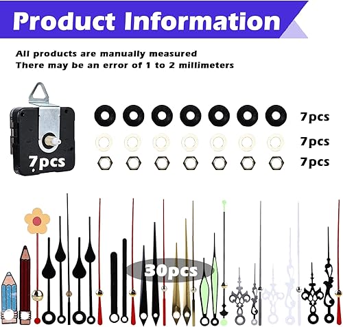 7 pièces d'horloge murale : mouvement à couple élevé pour horloge murale avec 10 jeux d'aiguilles, mécanisme à quartz silencieux outil de réparation, mouvement avec aiguilles, pièces de rechange