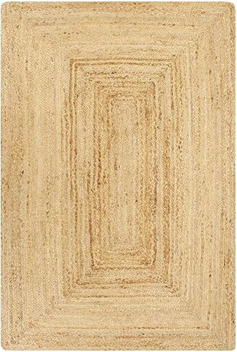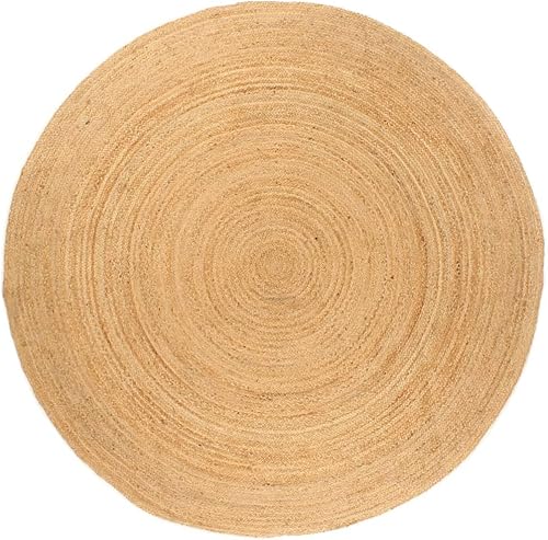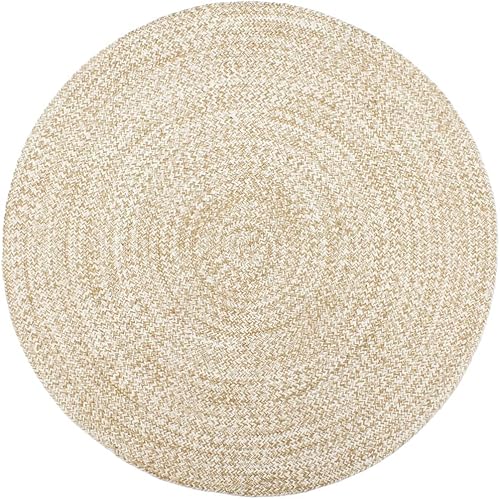 vidaXL Tapis Fait à la Main Jute Moquette Carpette Plancher Coussin de Sol Salon Chambre à Coucher Intérieur Salle de Séjour Maison Blanc et Naturel 90 cm