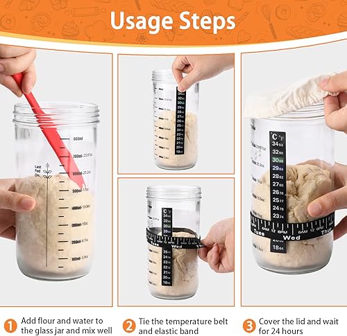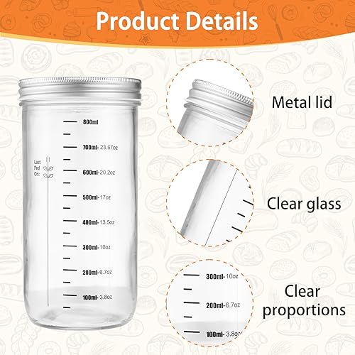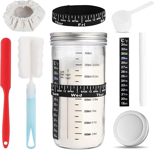 ZUYIST Kit de démarrage de levain de 1000 ml avec graduation, verre de fermentation avec couvercle, verre à levain avec ruban doseur et agitateur en silicone, kit de démarrage pour la fermentation du