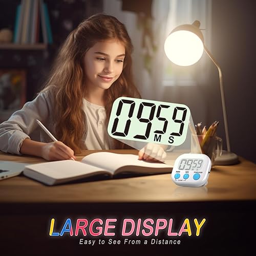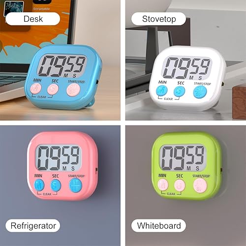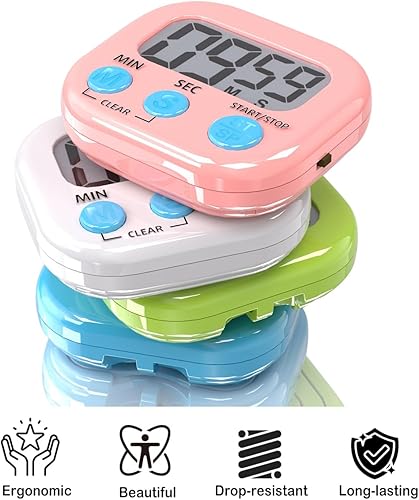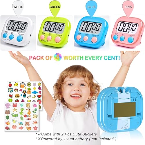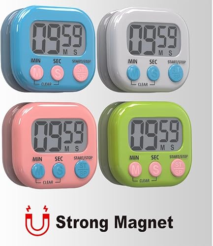 Acomingwin 4 Pièces Minuteurs de Cuisine, Timer Enfant Compteur à Décompte avec Grand Écran, Alarme Forte pour Cuisine, Salle de Classe & Devoirs Enfants-Alimentation par Piles AAA (Non Inclus)