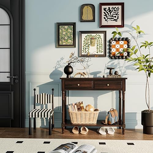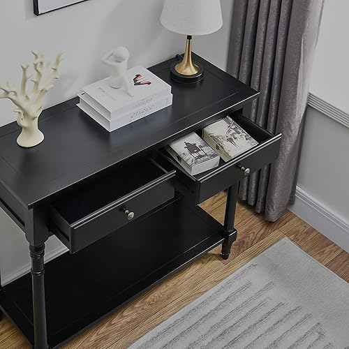 PADMA HOUSE Console Meuble en Bois Massif avec 2 tiroirs Table Console avec étagère de Console d'entrée de Hall d'entrée étroite pour 2 Niveaux Table d'entrée de Salon (Bleu foncé)