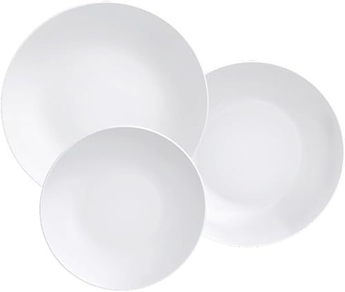 Tramontina - Ensemble d'assiettes plates 25cm, creuses 21cm et a dessert 19cm en porcelaine Leonora. Lot de 12.