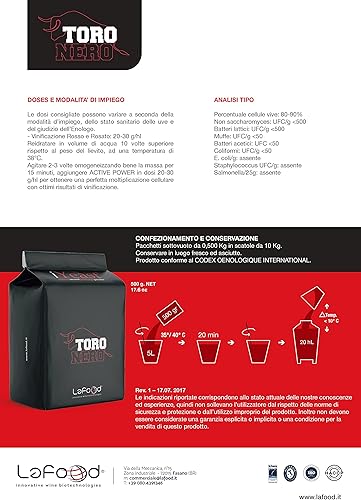 iYeast Levito Enologique sélectionnée, Taureau Noir 0,500 kg - Levure pour Vinisification/Fermentation/Vin