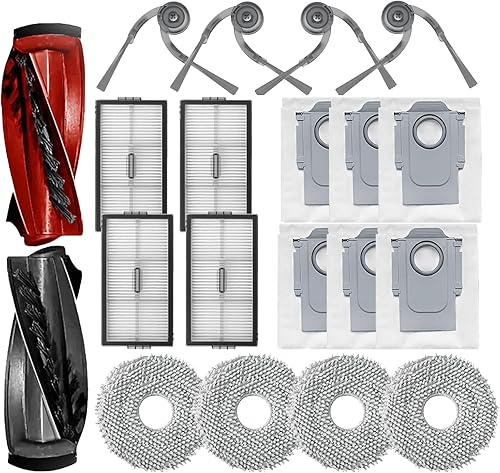 Dxyue Lot de 20 pièces de rechange pour aspirateur Roborock Saros 10R/G20S Ultra, 1 brosse principale, 4 brosses latérales, 4 filtres HEPA, 4 serpillères, 6 sacs à poussière