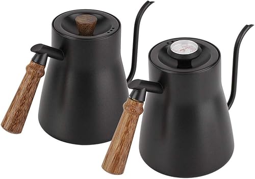 Cafetière, cafetière à poignée en bois en acier inoxydable épaissi avec thermomètre, bec long et fin soigneusement conçu, Versez sur la bouilloire à caféadapté pour le thé et le café