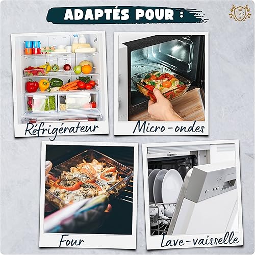 LG Luxury & Grace Lot de 4 Boîtes Alimentaires en Verre 1500 ml. Récipient Hermétique. Boîtes de Conservation pour Micro-Ondes, Four, Lave-Vaisselle et Congélateur. Sans BPA.