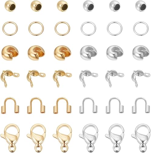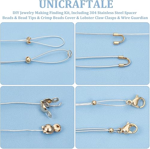 UNICRAFTALE 2couleur Acier Inoxydable Kit de Recherche de Fabrication de Bijoux à Faire Soi-Même 200 pièces Perles D'Espacement avec 40 pièces Fermoirs à Pince de Homard avec 40 pcs de Gardien de Fil