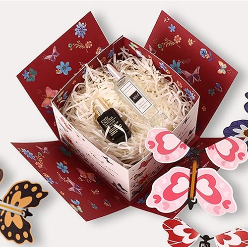 KASESSS Boite Surprise avce Papillon Flottant, Créatif DIY Explosion Box, Boite Cadeau Explosion Papillons, Surprise Box Gift box pour Anniversaire, Mariage, Saint-Valentin, Fête de Fin d'études