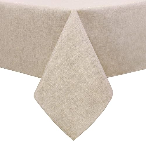 Hiasan Nappe rectangulaire Aspect Lin Lavable et imperméable, Nappe Exterieur Impermeable Jardin, pour Salle à Manger, Jardin, fête, Pique Nique, Anniversaire, Mariage ou Maison 135x240cm Beige