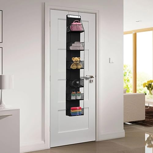 VirtuGro Étagère Suspendue Organisateur Sac a Main Rangement Suspendu sur Porte à 6 Compartiments Rangement Sac à Main avec Crochets en Métal Sac Rangement Pliable Noir