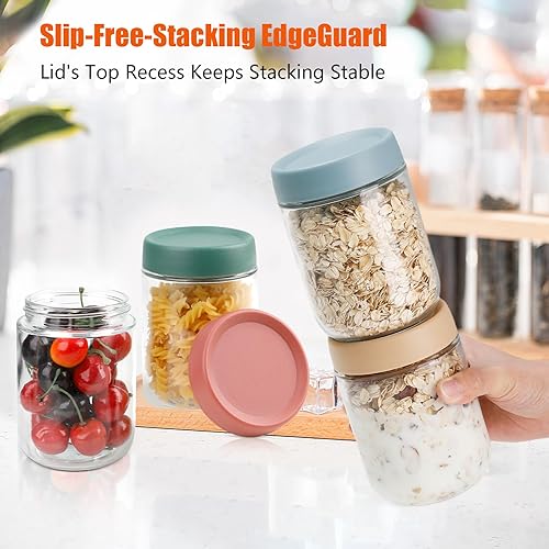 VINATO Lot de 4 Bocaux en Verre Hermétiques 480ml avec Couvercles, Bocal en Verre avec Couvercle, Pots Yaourts avec Couvercle, Overnight Oats Jar, Récipients Alimentaires Empilables