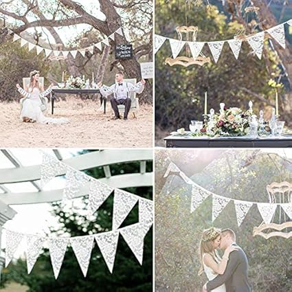 jijAcraft Guirlande Fanion Toile de Jute et Dentelle, 10 Mètres/36pcs Bannière de Drapeau Triangle Vintage pour Décoration de Mariage Champêtre, Décoration de jardin