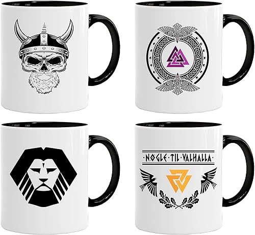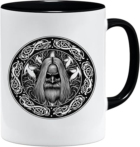 Jungle Mug Tasse viking nordique | Idée cadeau pour les hommes âgés, papa, grand-père, tasse à café, motif viking, tête de mort, chope à bière thors hammer (VIKING033)