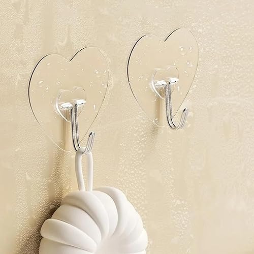Générique Accroches Murales Adhésives, Crochets Adhésifs Transparents pour Serviettes, Porte-Cintres en Forme de Cœur Transparent 10 Pièces pour Porte Cuisine Salle de Bain Douche Clés