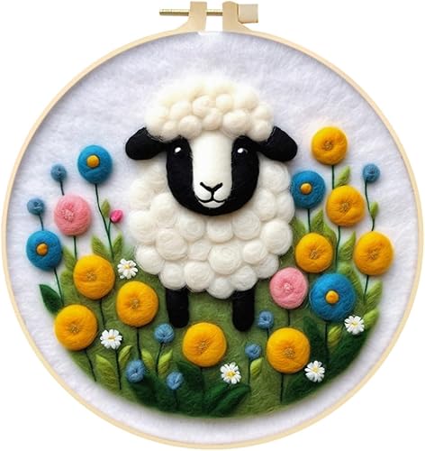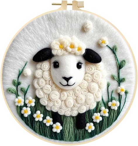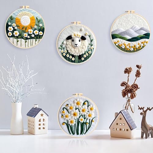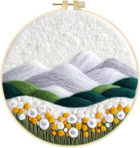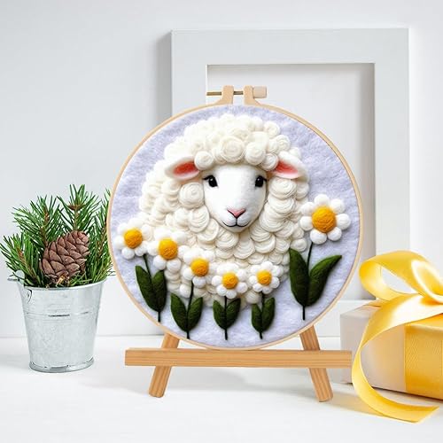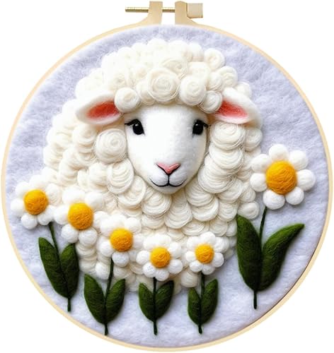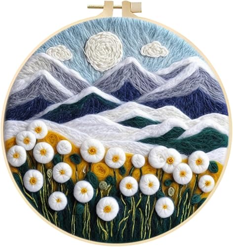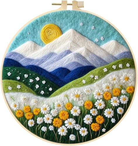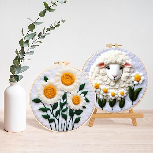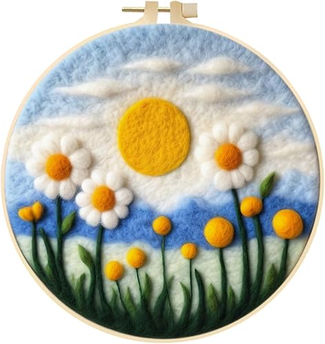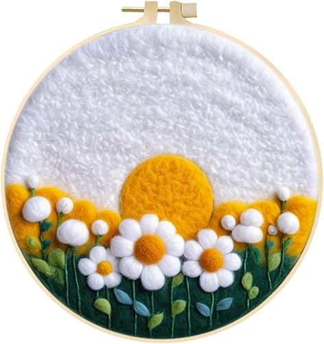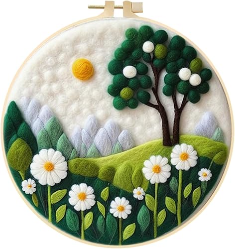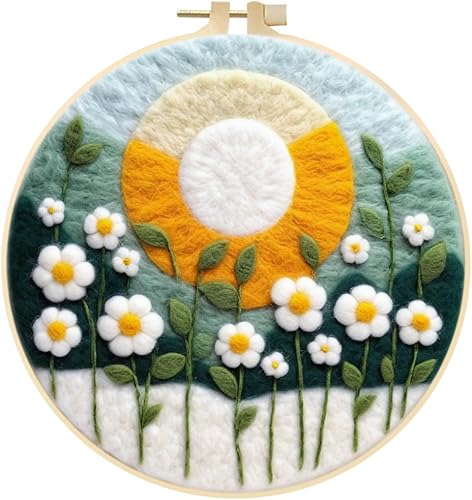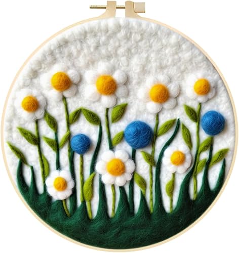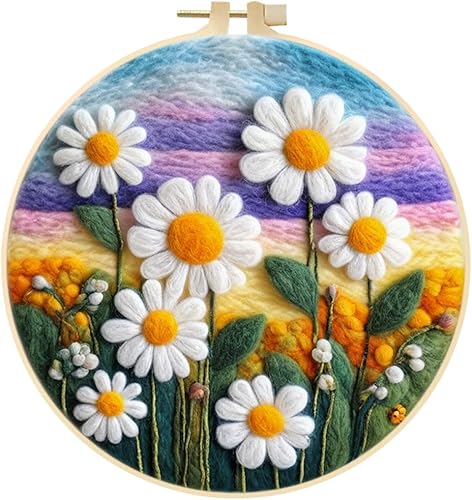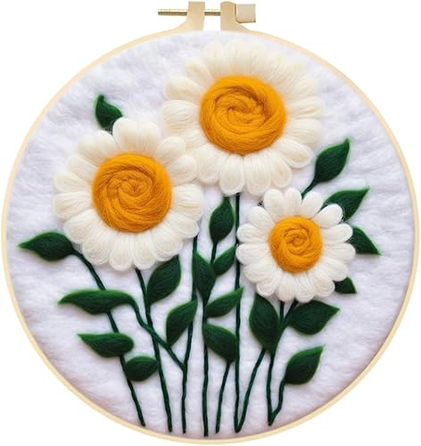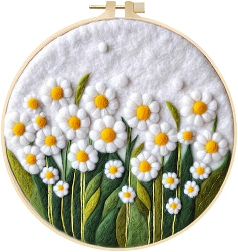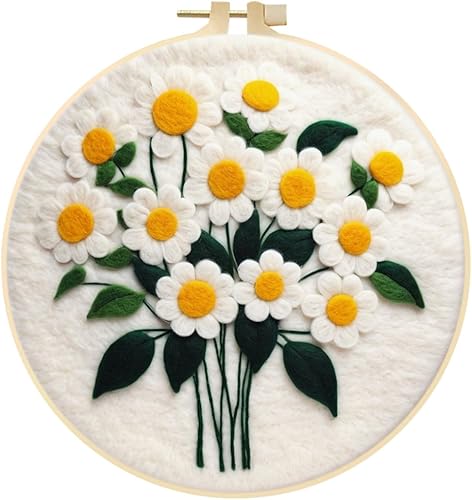 Marguerites Feutrage de Laine Kit, Kit de Broderie Bouquet de Fleurs Blanches, Kit de Feutrage à L'aiguille Cadre Débutant Adultes avec Cadre Photo, Laine, Tapis de Mousse et Laine Feutrage Outil #10