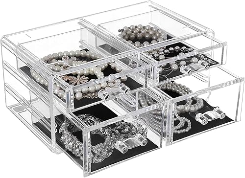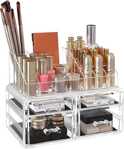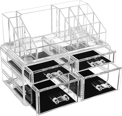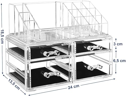SONGMICS Cosmétiques Maquillage Organisateur Acrylique Transparent 4 Tiroirs avec Les Dimensions différentes Cadeau Noel JKA005TP