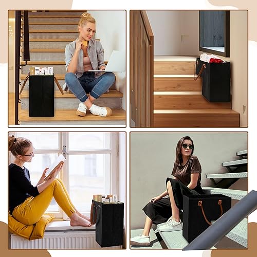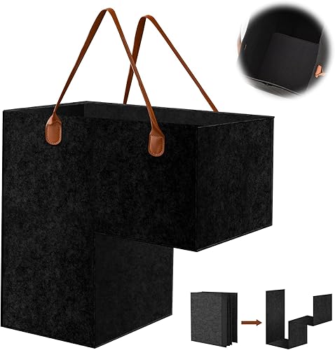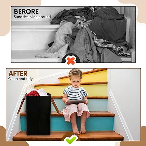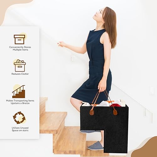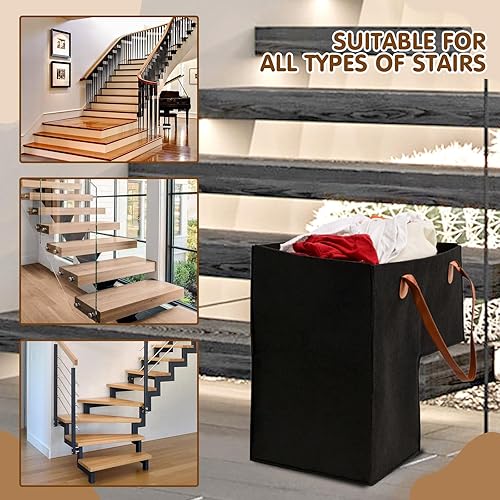 YAOZUP Panier d'escalier, Panier Organisateur d'escalier en Feutre, Panier d'escalier en Forme de L Pliable avec Poignées en Similicuir, Organiseur d'escalier pour Décoration Maison (Noir)
