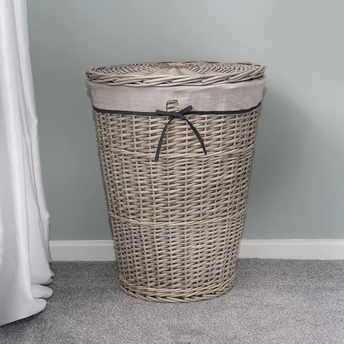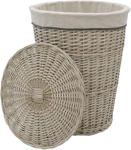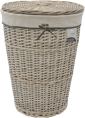 JVL Arianna Panier à linge rond fuselé en osier Gris délavé