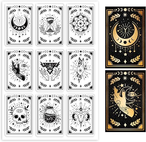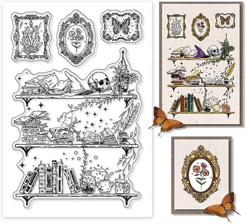 PH PandaHall Tampon de Carte Magique en PVC Transparent Tampons Sur le Thème de la Sorcière Gothique Corne de Chèvre Potion Yeux de Lune Crâne Sablier Minuterie pour Bricolage Scrapbooking