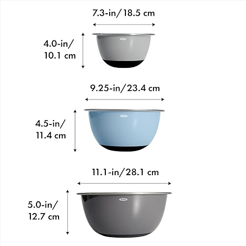 OXO Good Grips Lot de 3 bols mélangeurs en acier inoxydable Bleu/gris 4,7 l