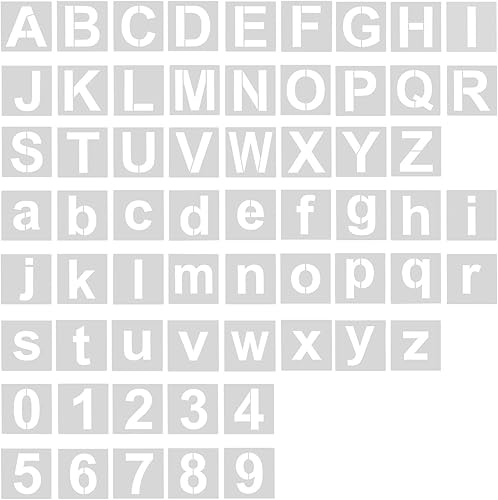 62pcs Alphabets Numéro Pochoirs, 5cm Lavable Plastique Réutilisable Pochoir de Lettres, Pochoir Chiffre, Pochoir d'Artisanat de Lettre pour Le Dessin d'Art, l'Écriture de Bricolage