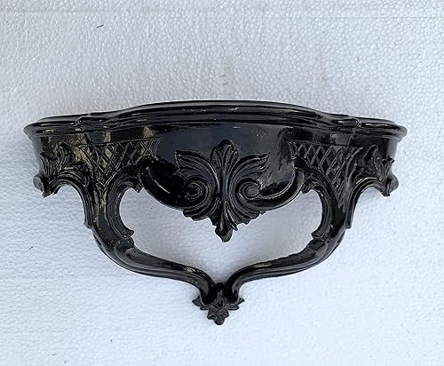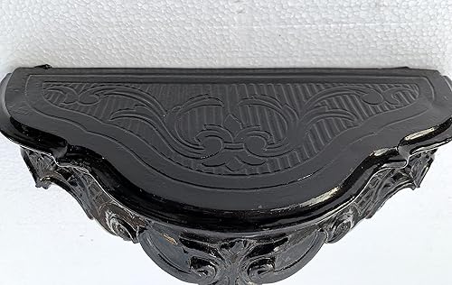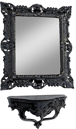 3047+cp69 Miroir mural, noir, avec console, style baroque, antique, 45 x 38 cm, pour couloir, salle de bain, avec étagère, décoration murale