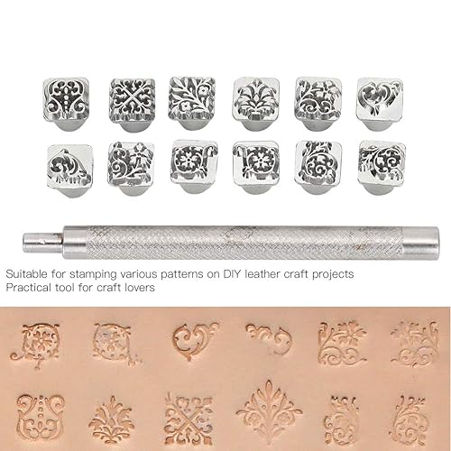 du cuirdu métal, Ensemble d'outils de tampon en alliage de Zinc avec 12 outils de tête de poinçonnage à motifs différents pour l'impression du bois Leather Tools