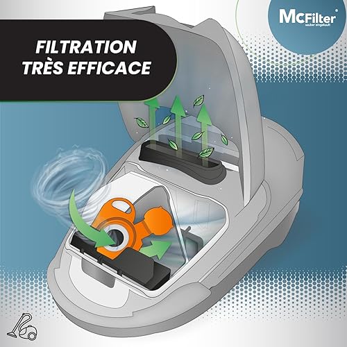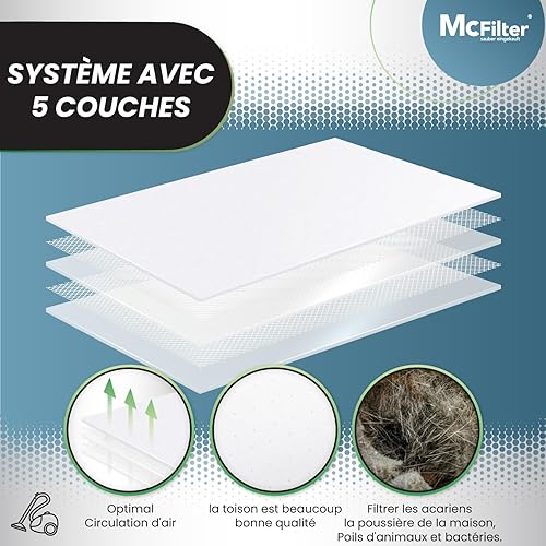 McFilter | 20 sacs à poussière adaptés à Swirl PH86 | pour Philips, AEG, Electrolux, Volta | PH 86 | sac à poussière à 5 couches, disque de recouvrement en plastique et fermeture à clapet