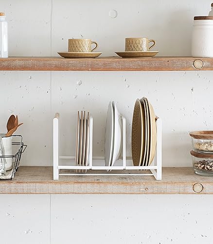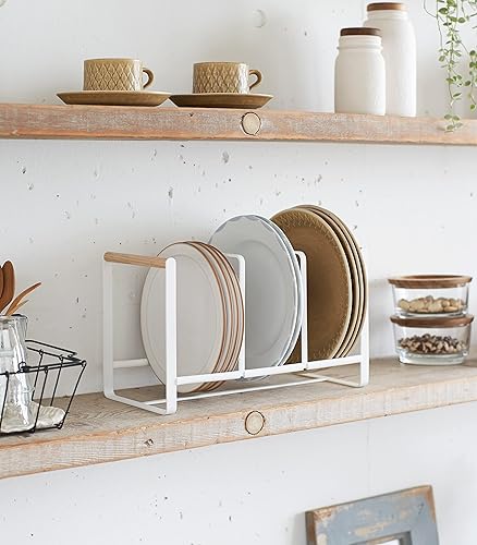 Yamazaki 2963 Tosca Dish Organiser, White, Steel/Wood, 34.5 x 16.5 x 20 cm