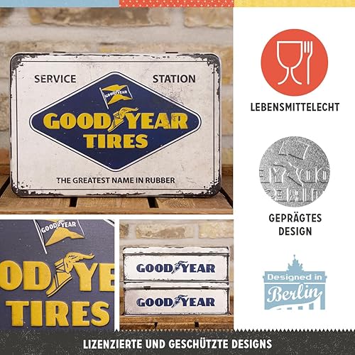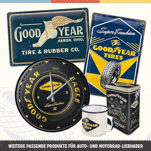 Nostalgic-Art Boîte rétro Plat, Goodyear – Logo – Idée de Cadeau pour Fans de Voitures et de Motos, Récipient avec Couvercle, Design Vintage, 2,5 l
