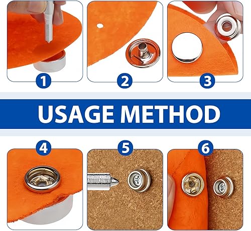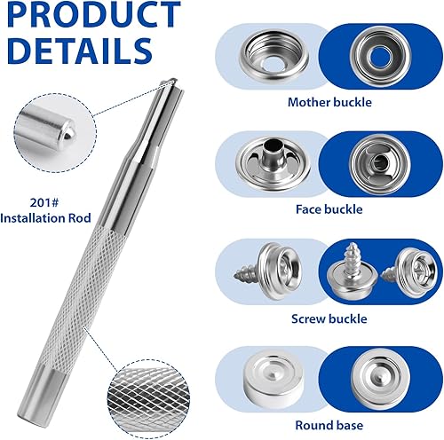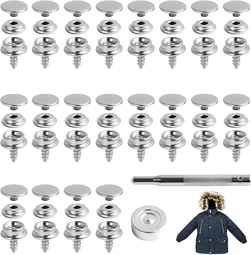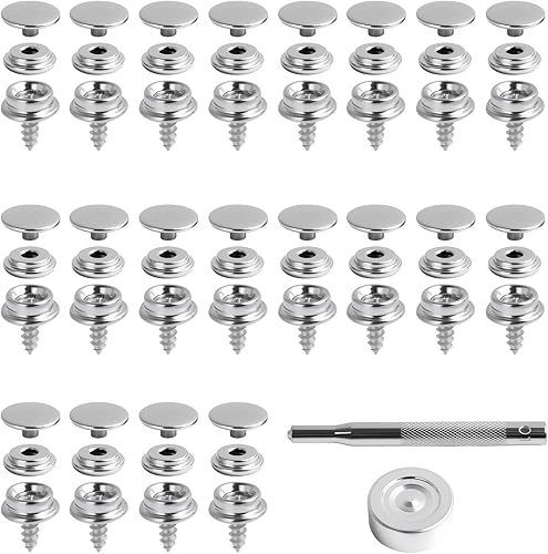 62 Pièces 10mm Boutons pression en Acier Inoxydable pour Toiles, Bâches, Meubles, Voiles et Tentes de Voiture, Incluant Outils de Fixation et Vis, Résistant à la Corrosion et Durable