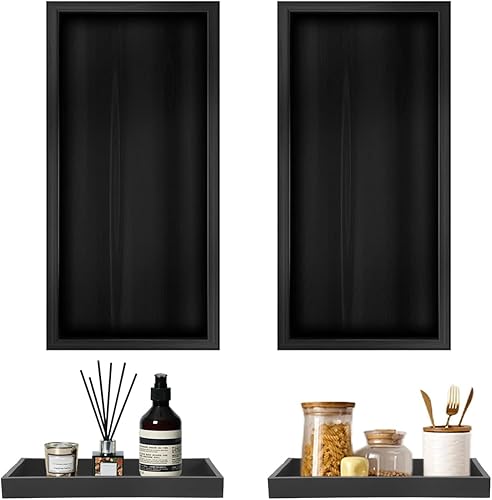 Lot de 2 plateaux de salle de bain en silicone noir - 20 x 10 cm - Plateau rectangulaire pour bougies, serviettes, cosmétiques