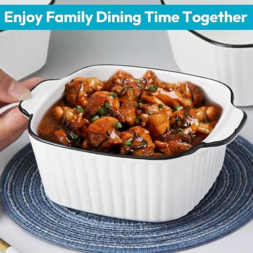 Lot de 4 mini plats à gratin carrés en céramique 400 ml - 14,5 x 11,5 x 5,5 cm - Avec poignées - Petit pour friteuse à air chaud, four et micro-ondes - Passe au four et au micro-ondes - Petit moule en