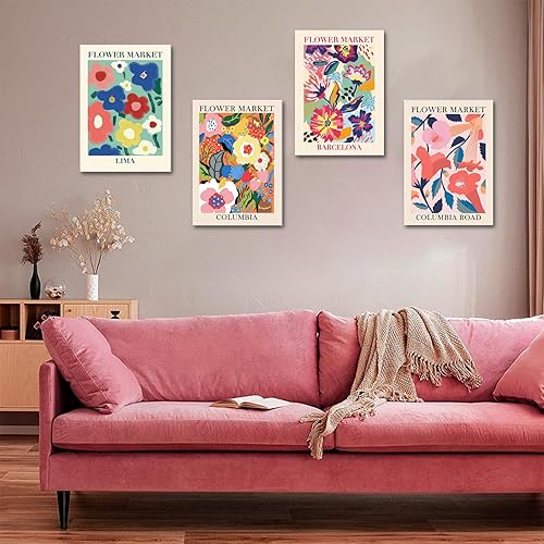 BSITSSS Lot de 4 Toile Decoration Murale, Fleurs Colorées Tableau Decoration Murale, Tableaux, Posters et Arts Décoratifs 20 x 30 cm, Modes Tableau MuraleDecorations (Toile Uniquement)