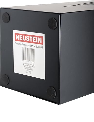Neustein Porte-parapluies au design moderne en métal pour la maison et le bureau, design parapluie, 2 crochets, 2 bacs de récupération d'eau amovibles, 15,5 x 15,5 x 49 cm, noir, carré