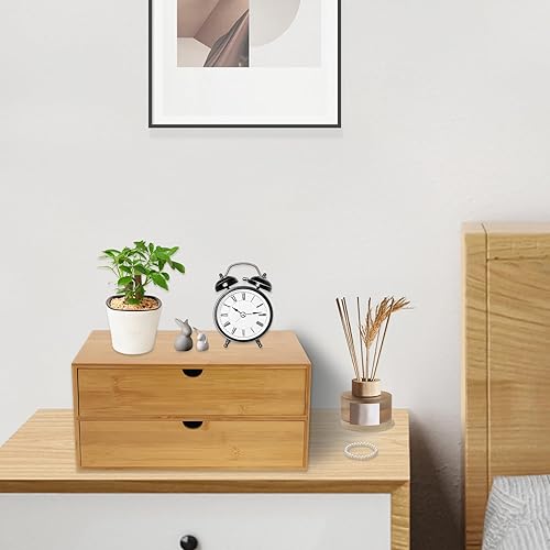 Mini organisateur de bureau, en bambou, boîte de rangement pour table, boîte de rangement en bambou avec 2 tiroirs, pas de montage nécessaire, pour le bureau, la maison, les articles de toilette