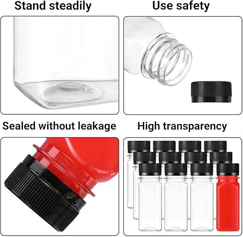 12 Mini-Bouteille Plastique, Bouteilles jus Plastique, Bouteilles Réutilisables, Bouteille Jus Fruits, PET Transparent de qualité Alimentaire, Avec Bouchon Hermétique, pour eau, Café Glacé, Smoothies
