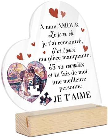 Putuo Decor Plaque Cœur Acrylique avec Base Bois Message d’Amour Gratitude pour Mari Papa Grand-Mère Marraine Amour Cadeau Sentimental Décor Maison Bureau Anniversaire Fête (Cadeau Papa)