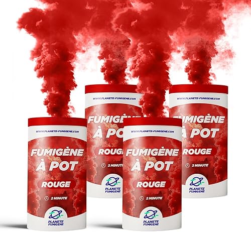 PLANETE FUMIGENE Fumigène en Pot 2 MINUTES couleur Rouge - Lot de 4 - Allumage à mèche, durée 120 secondes, fumigene couleur à poser au Sol - fumigene pot au sol Catégorie F1 - LIVRAISON 24/48H