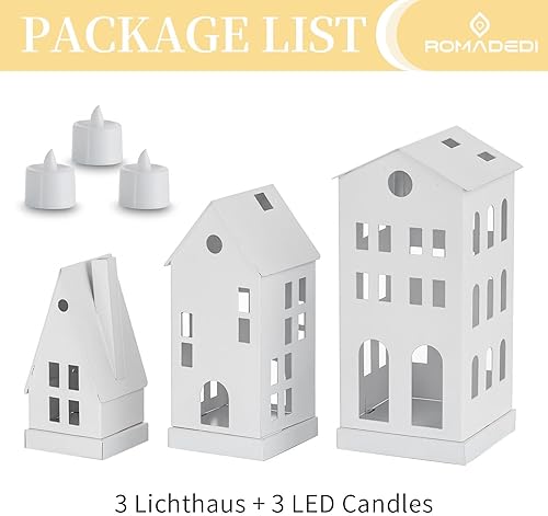 Romadedi Lot de 3 Maison Lumineuse en Métal: Maison de Noel avec Bougie Chauffe-Plat LED pour Decoration Salon Maison Noel Cadeau de Pendaison de Crémaillère