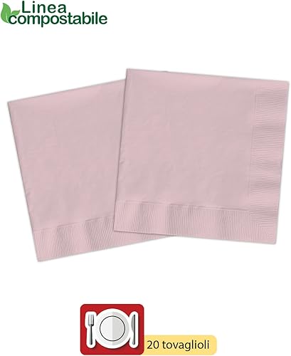 Ciao Kit Table Fête Party Flower Shape pour 8 Personnes (44 pièces: 8 Assiettes Ø23cm, 8 Assiettes Ø18cm, 8 gobelets 200ml, 20 Serviettes 33x33cm) en Papier compostable eco-Friendly, Rose Pastel