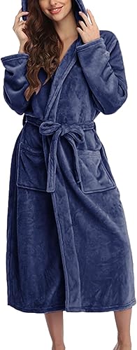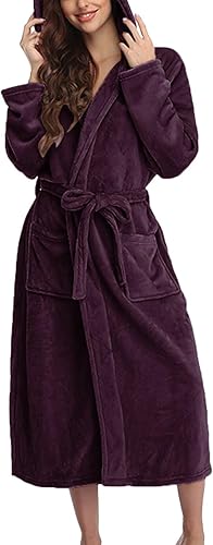 Peignoirs d'hiver pour femmes, peignoir à capuche en coton super doux en polaire pour femmes, peignoirs thermiques en peluche avec ceinture, vêtements de détente confortables, couleur unie, longs
