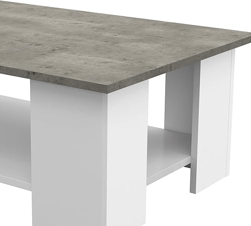 IDMarket - Table Basse rectangulaire ELI Blanche Plateau Effet béton
