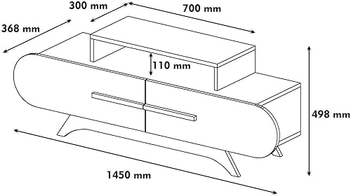 Dmora - Meuble TV Praesepe, Buffet de Salon, Armoire Basse pour TV, Base Murale de Rangement, 145x37 h50 cm, Noyer et Jaune