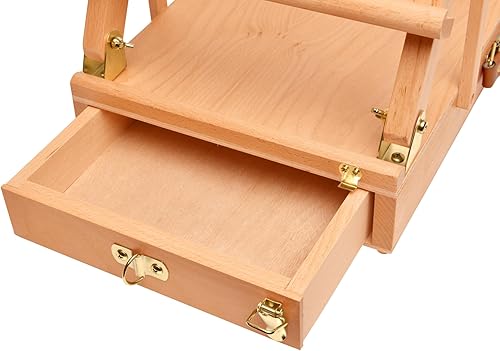 Artina 30pcs Kit Peinture Santorini avec Chevalet Bois Le Mans – Set Peinture Acrylique avec 5 Châssis, 12 Couleurs Acryliques, Pinceaux, Chevalet de Table avec Tiroir Rangement Outils Peinture
