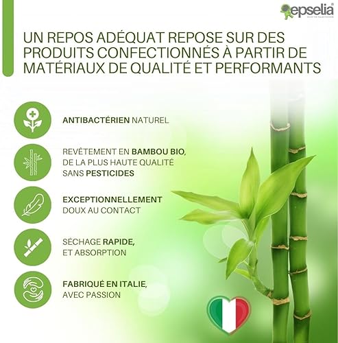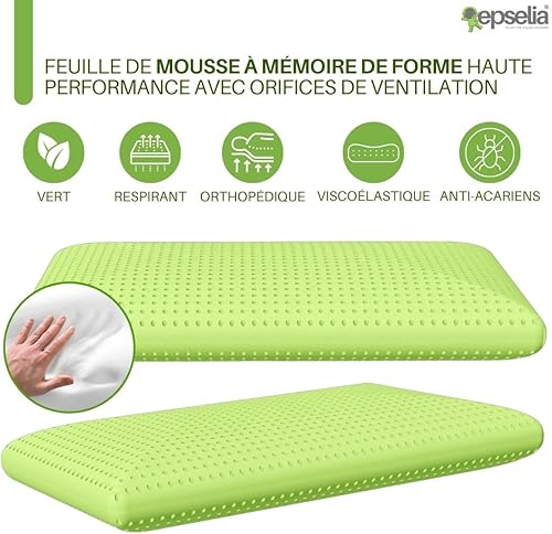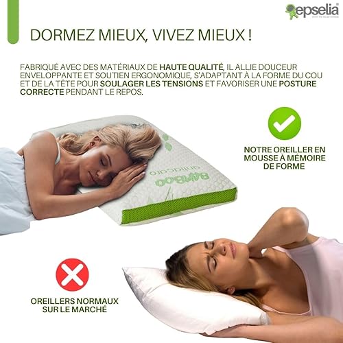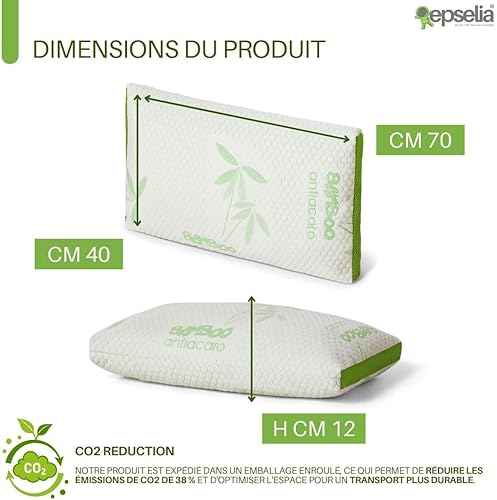EPSELIA Coussin Oreiller pour Le Sommeil en Mousse à mémoire de Forme, revêtement en Bambou Bio, Plat et Bas, 70x40 cm, H6, avec Fond Respirant Air 3D, Amovible, CertiPUR™ Oeko-TEX®